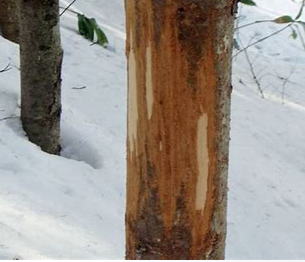 <鹿が樹皮を越冬のために食べるのだそうです>